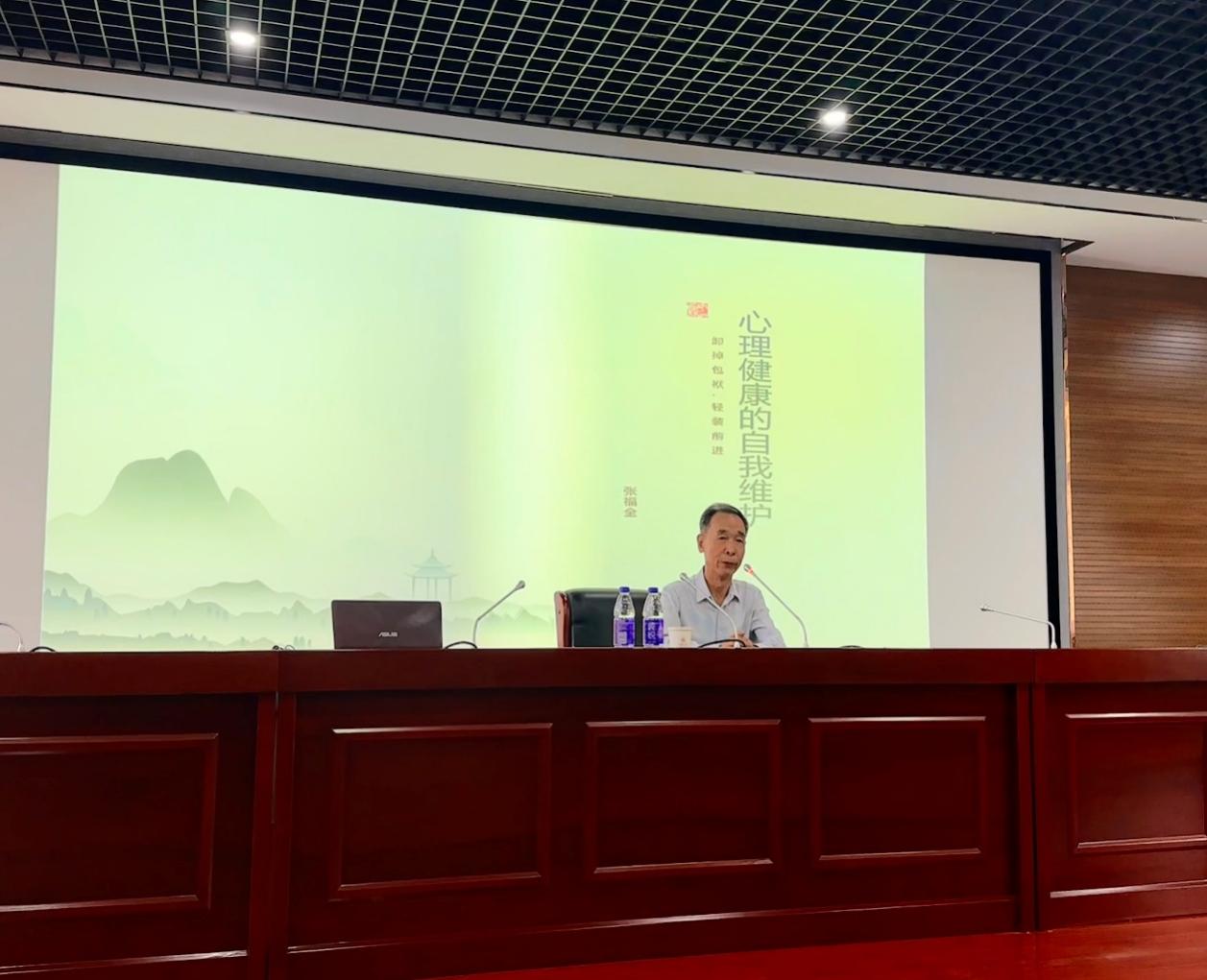 5月16日下午15時,合肥大學關心下一代工作委員會、學生處和經濟與管理學院共同邀請張福全教授為經管學院心理委員、寢室心理聯絡員等學生干部開展“心理健康自我維護”的講座。本次講座圍繞心理問題與心理疾病、如何評估與判斷、心理問題形成的原因以及如何自我維護四部分展開。