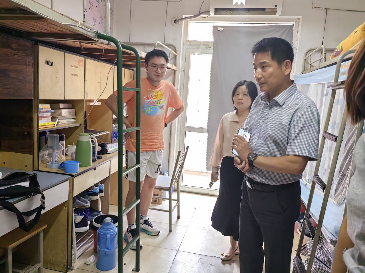 為督促學生養(yǎng)成良好的衛(wèi)生習慣,鞏固經(jīng)管學院宿舍安全衛(wèi)生“百日行動”實施成效,5月26日下午,院黨委副書記夏丹青陪同學生處副處長陶龍澤前往香怡社區(qū),檢查香怡4棟經(jīng)管男生宿舍衛(wèi)生情況。