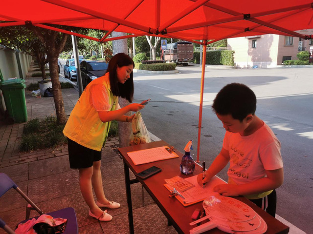 城市剛剛蘇醒,我院隊員便已候在垃圾分類打卡點處,她的主要工作是負責為業主稱量垃圾重量,指導小朋友們按照規定分類投放垃圾,幫助小朋友們完成打卡登記。前來垃圾分類投放打卡的業主小朋友們絡繹不絕,活動井然有序地進行著,大多數小朋友能夠順利完成垃圾分類打卡活動,但偶爾會出現對垃圾分類知識掌握不夠全面的小朋友。面對該情況,我院隊員悉心帶領小朋友溫習垃圾分類知識,幫助孩子們分辨廚余垃圾和其他垃圾,并完成投放相應分類的垃圾、打卡登記的任務。暑意漸濃,一層細密的汗水布上了隊員的額頭,當日的晨間打卡活動已接近尾聲,她仍飽含熱情、積極準備著下一次在傍晚舉行的垃圾分類打卡活動。