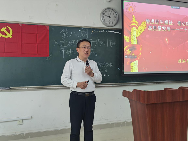 開班典禮圓滿結束,經濟與管理學院第八期入黨積極分子培訓班正式開始。黨委書記倪澤強為全體學員講授本期培訓班第一課《增進民生福祉,推動應用型高水平大學高質量發展——二十大報告學習體會》。倪書記首先向全體學員介紹了二十大報告中提出的新要求,強調了高校實踐“增進民生福祉”的重點在于發展就業。“兩利相衡權其重,兩弊相衡權其輕”,大學生應了解就業及考研的現狀,結合自身實際情況,權衡好兩者間的利弊,做好職業規劃,選擇合適自己的方向。“幸福生活是靠勞動創造的,大家要保持平實之心,客觀看待個人條件和社會需求,從實際出發選擇職業和工作崗位,熱愛勞動,腳踏實地,在實踐中一步步成長起來。”精彩紛呈的授課過程吸引了聽眾們的目光,并且對大家的思想觸動深刻,獲得了一致好評。