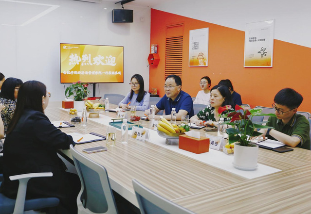 合肥橘子郡是一家通過線上運營的企業(yè),經(jīng)管學院一行實地走訪了辦公場所,了解了企業(yè)的業(yè)務模式,參觀了線上產(chǎn)品直播間。隨后進行了座談活動,人事總監(jiān)杜秋子介紹了公司的發(fā)展歷程、人員結構、業(yè)務布局、創(chuàng)新發(fā)展,說明了當前公司的各類人才需求。陳江華院長介紹了我院專業(yè)設置、就業(yè)情況、生源信息等。雙方就人才培養(yǎng)、就業(yè)招聘等進行詳細溝通,并就實習、就業(yè)等方面工作達成合作意向。