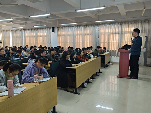 講座中,邵品德結合自身在金融行業深耕數十年的實際經歷,從行業介紹、自我認知、未來規劃與目標三個方面進行闡述,向同學們詳細介紹了證券行業、銀行業、保險業的崗位設置、薪資待遇、專業要求等情況,并對經濟類專業的就業方向展開了深入探討。他提到,要對自我有清晰認知,重視基層經歷,抓住行業的風口,關注長遠發展。此外,他通過講述自身的職業發展,鼓勵同學們樹立積極向上、頑強拼搏的健康心理狀態,在學習和未來的工作中銳意進取、勇攀高峰。在交流互動環節,同學們踴躍發言,邵品德耐心細致地解答了各種提問,現場氣氛熱烈、場面活躍,同學們紛紛表示受益匪淺。