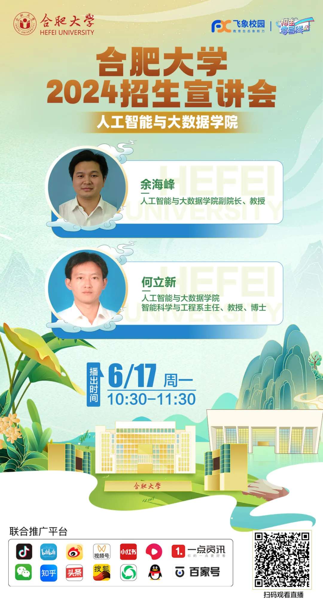 直播預(yù)告|“學(xué)院面對(duì)面”:合肥大學(xué)2024年線上招生宣講精彩來(lái)襲!