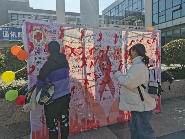 設(shè)宣傳展板,開展防艾簽名活動(dòng)。在學(xué)校主要通道設(shè)置宣傳臺(tái),開展展板簽名活動(dòng),分發(fā)預(yù)防艾滋病核心知識(shí)的宣傳折頁(yè)。預(yù)防艾滋,你我同行,簽下的不僅僅是名字,更是一份承諾。通過舉辦簽字活動(dòng)激發(fā)學(xué)生預(yù)防艾滋病的使命感和責(zé)任感。同時(shí)在學(xué)生宿舍區(qū)、食堂門口等人流量大的地方,懸掛橫幅4條,張貼宣傳海報(bào)30余張,分發(fā)宣傳折頁(yè)1000余張。