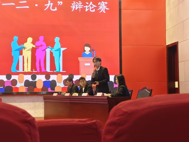 代表我院出戰此次辯論賽的胡濤、趙文武、胡致遠以及潘晨曦四位同學,在比賽伊始,便即刻全身心投入狀態,旋即與對方辯手展開了極為激烈的交鋒。