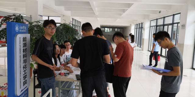 為做好2019級能源材料與化工學院研究生的迎新工作,確保新生順利報到,院成立研究生迎新工作組,提前準備,迎新工作的各個環節進行了細致周的安排部署。按照迎新方案,提前通知新生準備研究生入學所需要的畢業證書以及學歷驗證報告等相關材料。早上八點不到,第一名來自南京的學生就來到生化樓報到,在報到臺前有序交齊升學各項材料,領取新生入學報告單和入住單,然后到分配的宿舍報到入住。能源材料與化工學院院長董強、副院長胡坤宏上午前往報道地點,查看報道情況,對志愿者們的工作給予肯定,對報考我校的研究生們表示了歡迎。