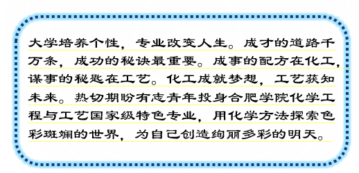 本專業立足安徽區域煤化工、鹽化工和石油化工以及衍生材料化工、精細化工、能源化工發展技術新趨勢,主動設置與產業鏈緊密對接專業方向和學科交融,構建了材料化工、節能技術、精細化工和化工分離4個專業方向,形成了專業特色。