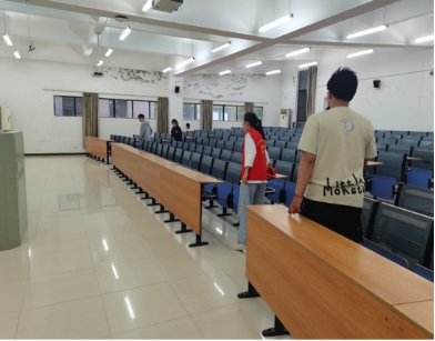 “共創(chuàng)文明校園,營造溫馨食堂”活動中,我院志愿者一絲不茍地整理、清潔生化樓教室,擦拭黑板、擺放桌椅、打掃地面……不落下任何一個角落,為同學們營造學習環(huán)境。