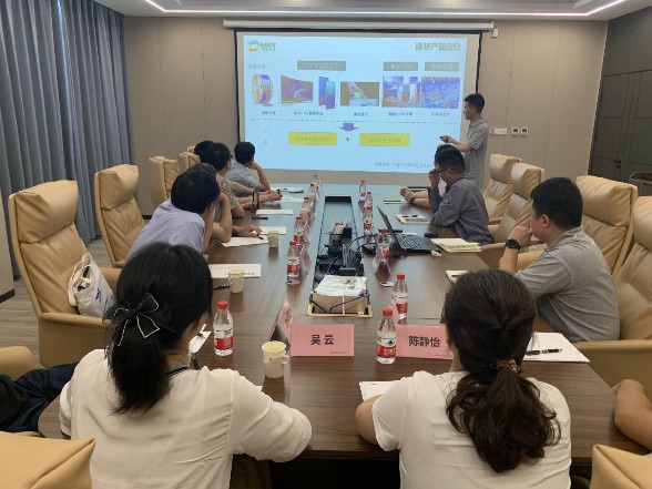 童玉松代表學院感謝鼎材科技對學院相關工作的大力支持,介紹了學院基本情況,并共同為合肥學院大學生就業實習基地”揭牌。魏安樂介紹了學院學生就業及2023屆畢業生生源情況;胡坤宏院長和鄧崇海院長及相關老師分別介紹了各自科研方向和成果。與會人員圍繞產學研合作、人才培養、就業實習等方面進行了深入細致的座談交流并初步達成具體合作意向。