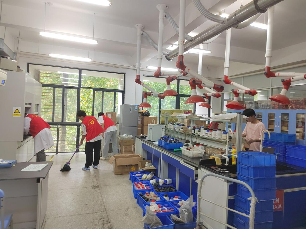為了弘揚(yáng)志愿者精神,發(fā)揚(yáng)入黨積極分子先進(jìn)性,給同學(xué)們一個(gè)舒適、干凈整潔的實(shí)驗(yàn)室,共同打造“和諧”的學(xué)習(xí)環(huán)境。能源材料與化工學(xué)院團(tuán)委學(xué)生會(huì)志愿團(tuán)于2022年8月31日中午12:20組織了新學(xué)期第一場志愿服務(wù)活動(dòng)——打掃和整理生化樓基礎(chǔ)實(shí)驗(yàn)室,本次志愿活動(dòng)共有二十余位志愿者參加。