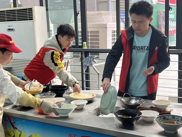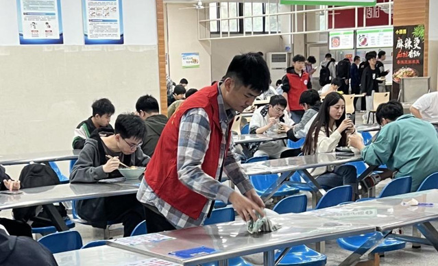 為深入學習貫徹習近平生態文明思想,以文明實踐助力文明創建,進一步提高我院學生文明素養,培育校園新風,努力營造積極向上、健康和諧的校園文明氛圍我院決定4月21日至25日在二、三期食堂舉辦維護食堂秩序志愿活動在這次維護食堂秩序的志愿活動中,志愿者們不辭辛苦,幫助食堂工作人員做好衛生清理工作,彰顯新時代青年們的無私奉獻精神。