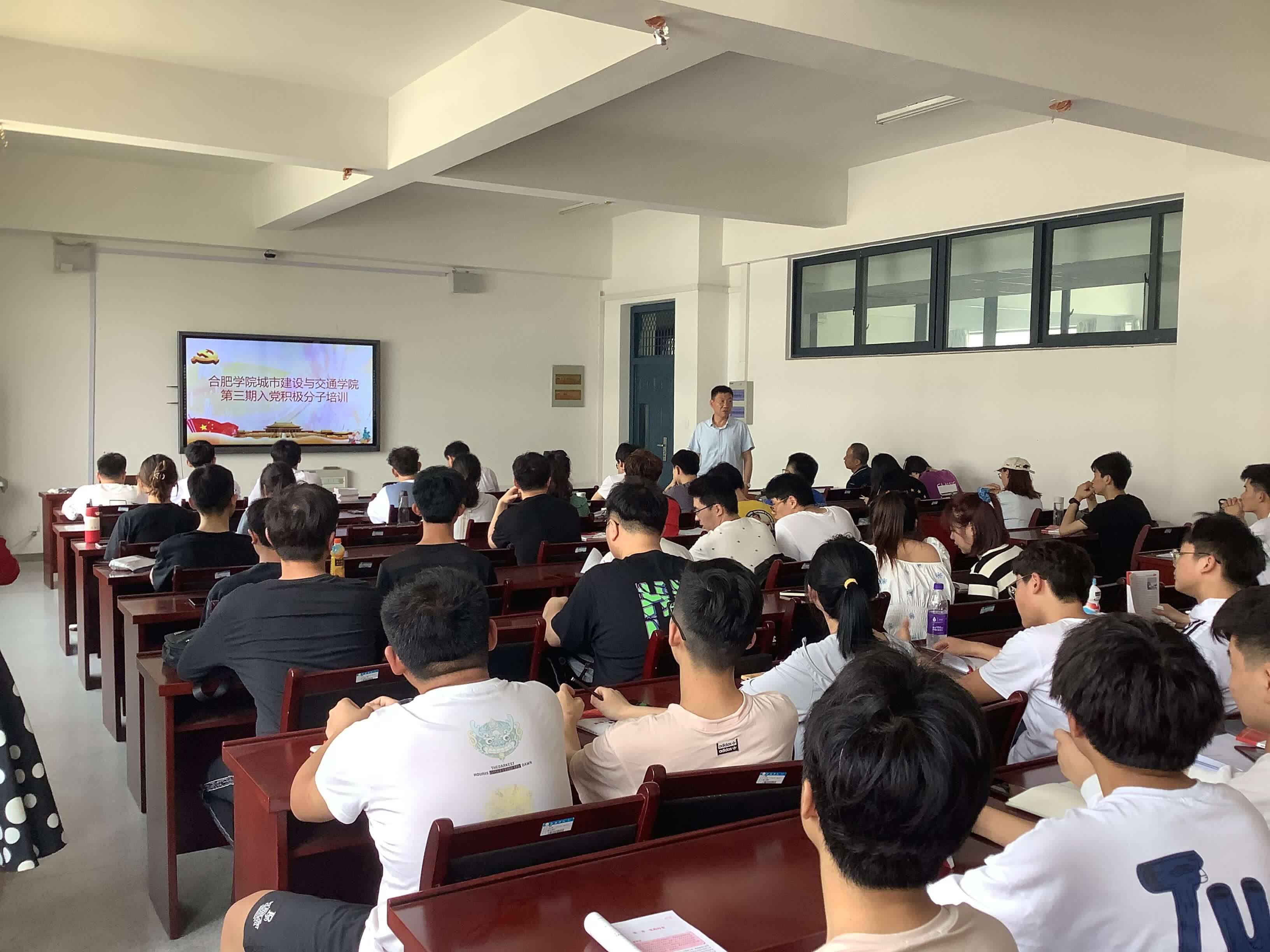 馬克思主義學院韓道友老師為學員進行了第一次黨課培訓。韓老師從黨的歷史發展進程講起,強調學習黨的歷史是為了走向更好的未來,要以新的姿態迎接建黨100周年。課上的時間是有限的,韓老師要求學員在課后更多地去學習和了解我黨艱苦斗爭的歷史,端正入黨動機,不忘初心,牢記使命。(城市建設與交通學院)