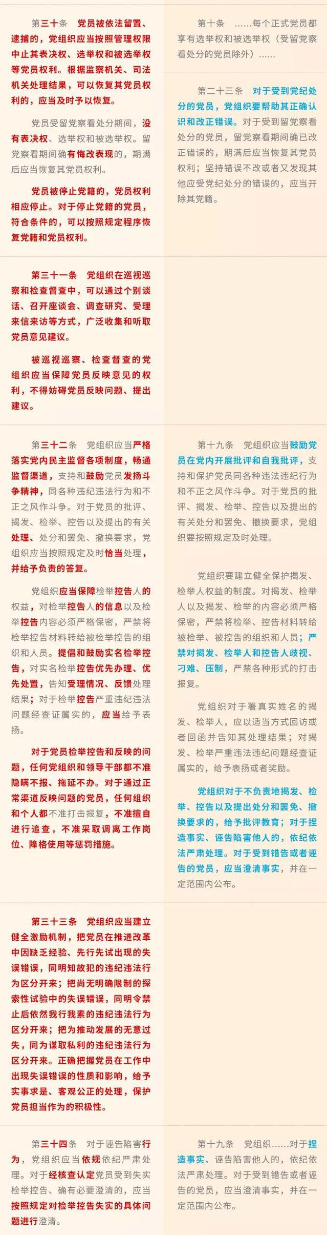 《中國共產黨黨員權利保障條例》修訂前后對照表