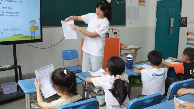 7月8日上午,合肥大學教育學院“同筑鄉村夢,共‘育'振興果”志愿服務隊于合肥市小廟鎮蜀山行知學校開展暑期“三下鄉”社會實踐活動。團隊成員黃秋語為學生帶來了少兒合唱歌曲《我們的田野》,旨在通過歌曲傳唱讓學生感受祖國山川之秀麗,以美育人、以文化人,增強學生感受美、鑒賞美、創造美的能力,進一步提升學生的全面素養。