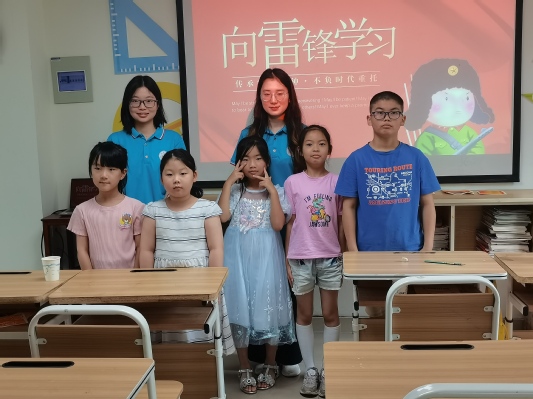 7月4日,合肥學院教育學院“七彩童年,‘育’你相伴”三下鄉團隊來到濱湖和園社區開展社會實踐活動,志愿者朱思宇和周琴為孩子們帶來了“弘揚雷鋒精神,傳頌英雄故事”主題課程。 雷鋒精神,人人可學;奉獻愛心,處處可為。六十年來,雷鋒精神哺育和激勵了一代又一代人成長,為讓雷鋒精神在中華大地不斷閃耀光芒,繼承革命先輩的優良傳統,培養學生愛黨、愛國、愛社會主義的樸素情感,我們設計了本次課程內容。在課程開始時,朱老師呈現了雷鋒的卡通形象,讓同學們猜測本節課學習的榜樣人物是誰,同學們對于雷鋒的形象并不陌生,都踴躍回答,“雷鋒!”