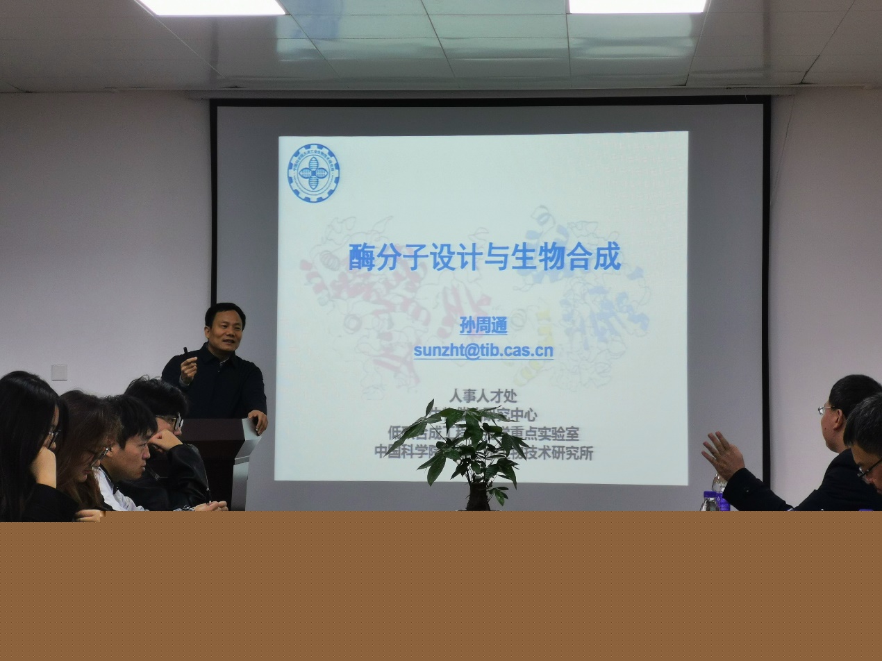 我院始終聚焦“地方性、應(yīng)用型、國際化”辦學(xué)定位,堅持走高水平應(yīng)用型特色發(fā)展之路,深入開展專業(yè)、就業(yè)、產(chǎn)業(yè)“三業(yè)一體”人才培養(yǎng)模式改革,緊緊圍繞“十大產(chǎn)業(yè)”中生命健康產(chǎn)業(yè),進一步助力學(xué)科建設(shè),推進產(chǎn)教研融合。2024年11月25日上午,生物食品與環(huán)境學(xué)院邀請中國科學(xué)院天津工業(yè)生物技術(shù)研究所孫周通研究員為學(xué)院師生作學(xué)術(shù)報告,報告題目為《酶分子設(shè)計與生物合成》。生物食品與環(huán)境學(xué)院院長阮班鋒,生物工程系、食品工程系專業(yè)教師、華恒卓越班本科生與生物與醫(yī)藥專業(yè)碩士生等相關(guān)師生參加報告。