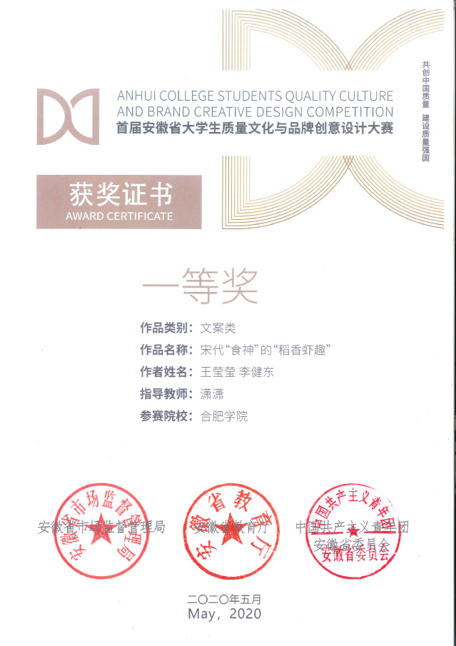 首屆安徽省大學生質量文化與品牌創意設計大賽