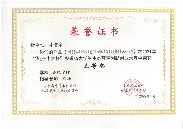 2021年安徽省大學生生態環境創新創業大賽