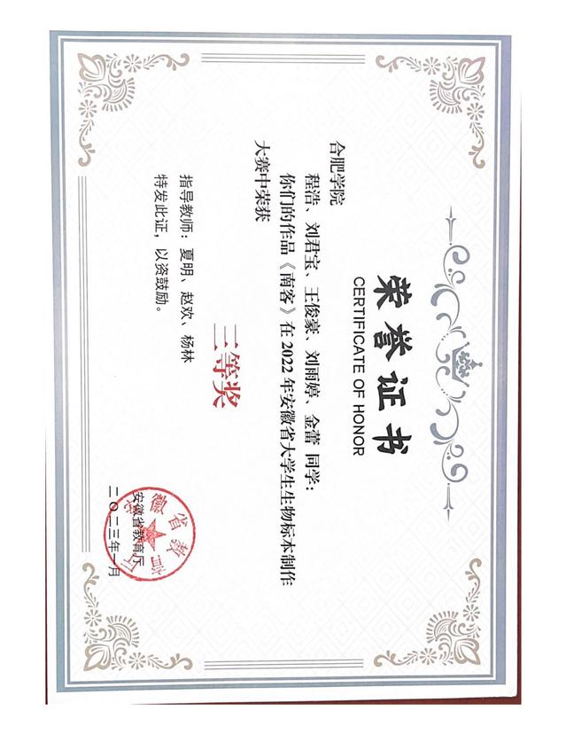 2022年安徽省大學(xué)生標(biāo)本制作大賽