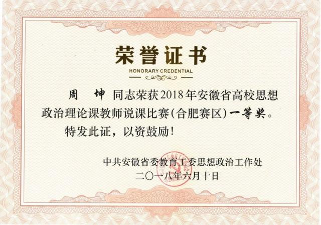 周坤等老師在2018安徽省高校思政理論課說課比賽中獲得好成績