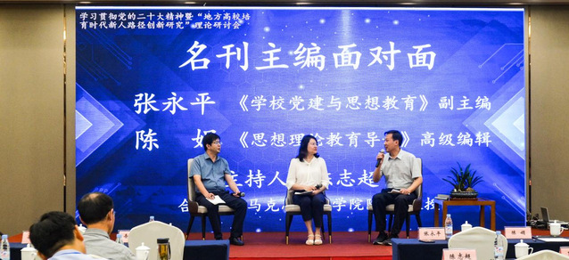 當日下午,大會進入名刊主編面對面交流環節。《學校黨建與思想教育》副主編張永平和《思想理論教育導刊》高級編輯陳娟應邀與現場的專家學者們進行面對面交流。主編們介紹各自期刊的征稿范圍、熱點研究問題、研究范式和寫作模式等,與會人員就論文的寫作和發表等方面的問題與主編進行互動交流。合肥學院馬克思主義學院院長陳志超主持交流會。