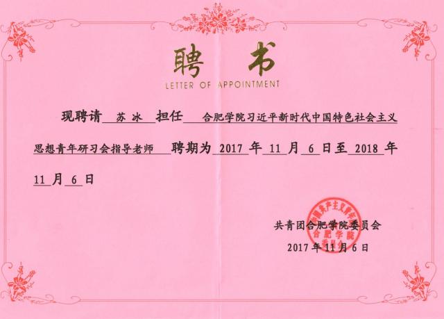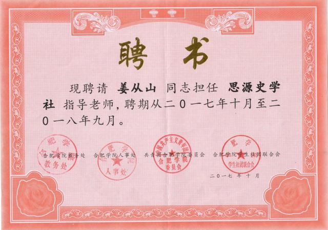 姜從山、黃瑩瑩、蘇冰被聘為新一屆合肥學院學生社團指導老師