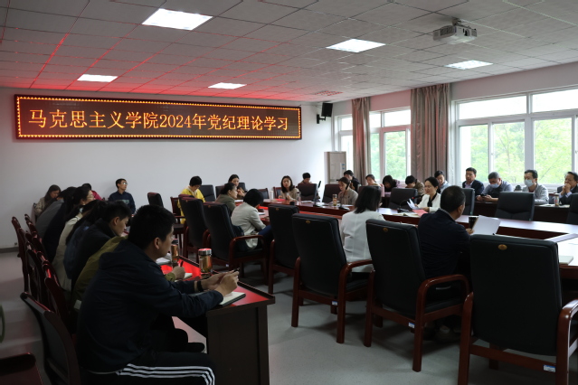 馬克思主義學院直屬黨支部專題學習《中國共產黨紀律處分條例》 4月30日下午,馬克思主義學院直屬黨支部在學院會議室召開專題學習會議,學習研討新修訂版《中國共產黨紀律處分條例》。會議由馬克思主義學院副院長、黨支部書記蘇冰主持,學院全體黨員教師參加會議。