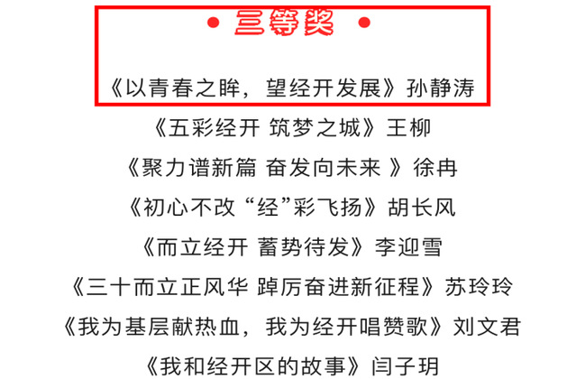 為充分展示經開區新時代青少年的良好精神面貌,進一步激發青春力量立足新起點、開啟新征程,合肥經開區黨政辦、團工委聯合舉辦了經開區30周年演講比賽,我校學子孫靜濤榮獲三等獎。