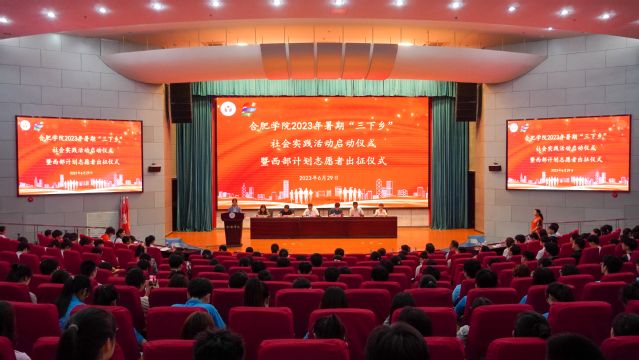 6月29日下午,我校2023年大學生暑期“三下鄉(xiāng)”社會實踐活動啟動儀式暨西部計劃志愿者出征儀式在圖書館報告廳隆重舉行。校辦公室、宣傳部、教務處、學生處、馬克思主義學院、團委部門負責人,各學院黨委副書記、團委書記、各團隊帶隊老師、馬克思主義學院指導老師、學生志愿者代表參與儀式。儀式由校團委副書記李妍妍主持,校黨委副書記劉建中出席儀式并發(fā)表講話。