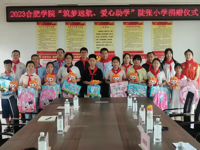 為助力鄉(xiāng)村教育振興,鞏固拓展脫貧攻堅成果,7月7日,我校赴泗縣陡張村和惠廟村開展2023年“筑夢遠航 愛心助學”捐贈活動。我校黨委組織部正處級組織員周全、外國語學院黨委書記吳孔寶、團委副書記李妍妍、黨委組織部副處級組織員張海卿等領導和當地鄉(xiāng)鎮(zhèn)領導、小學領導出席捐贈儀式,當地小學生代表和我校學生志愿者代表參與儀式。儀式分別在陡張小學和惠廟小學舉行。