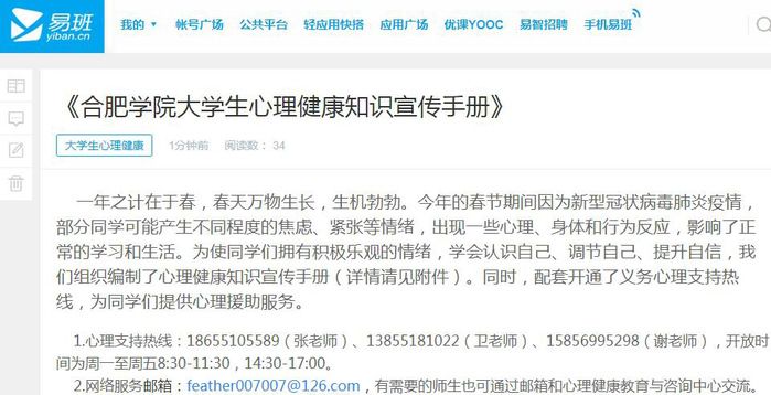 疫情期間我校大學生心理健康教育與咨詢工作扎實有效