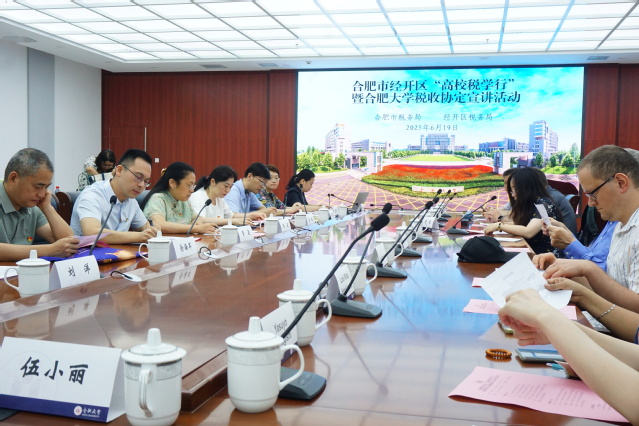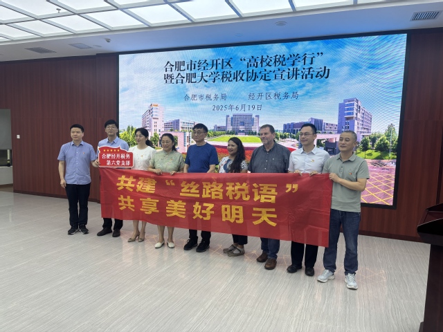 6 月 19 日上午,國際交流合作處、財務處聯合合肥經開區稅務局在大學生活動中心一樓會議室舉辦“高校稅學行”暨涉外稅收協定宣講活動。合肥市稅務局國際處、經開區稅務局相關負責人及稅務干部,國際交流合作處副處長孔春華、財務處副處長唐艷等部門負責人,外籍教師、留學生代表及對國際稅收政策感興趣的師生參與活動。