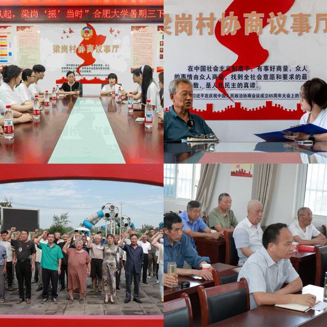 團隊赴梁崗村實地考察協商議事廳與黨建主題公園,學習當地特色議事機制。團隊走訪了兩位黨齡數十載的老黨員,聆聽他們投身鄉村建設的奮斗歷程。通過發放問卷、深度訪談等方式,團隊收集逾百份一手資料,為提煉基層治理“梁崗經驗”奠定數據基礎。
