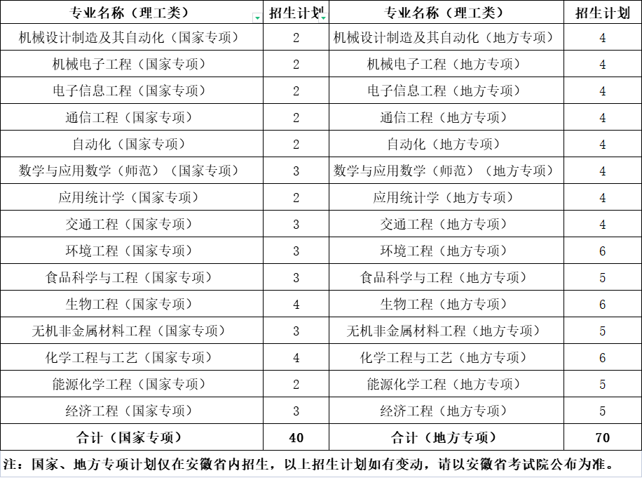 合肥學院2023年安徽省專項分專業招生計劃(理工類)(安徽省院校報考代碼9110)