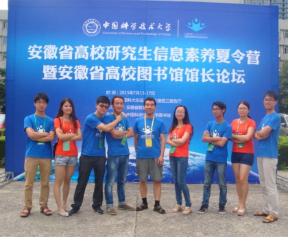 2015年第三屆安徽省研究生信息素養夏令營于7月13日至17日在中國科學技術大學舉行,來自安徽省各個高校的精英學子匯集合肥,齊聚于中國科學技術大學,一起在學習中度過了歡快的五天時光。本屆夏令營主題是提升國際視野,著重強調圖書館館藏資源在科研中的地位,幫助提高學生的信息獲取和信息分析能力。我校八位研究生參加了本屆高校研究生信息素養夏令營。