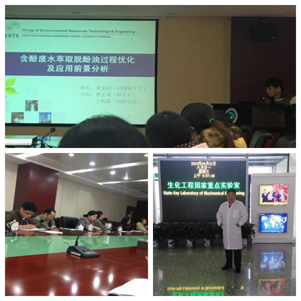 而竇衛軍同學說,他到過程所的第一天,萬印華研究員團隊的沈飛副研究員邀請他在所里散步,期間向他介紹過程所的歷史、所里的自然環境以及關心他來到北京的生活情況。接下來的日子,竇衛軍在導師們的指導下便馬不停蹄的投入到學習之中,一邊讀文獻,一邊隔三差五的找老師討論,整個課題組里充滿濃厚的學習氛圍,定期舉行Journal  Club和組會討論等學習研討活動。在Journal  Club時,老師和同學們根據最近看的文獻,將新穎的觀點和啟發與大家一起討論,共同學習,共同進步。在組會中,每一位同學都要準備20-30分鐘的發言,將一個月來的實驗數據向老師匯報,老師給予點評和建議,并安排下一個月的學習任務。平時,竇衛軍有什么問題隨時向老師們提問。他回憶,記得有一次,晚上八點左右,他對于文獻理解不透徹便向沈飛老師提問,沈老師耐心講解,并深入淺出地介紹文獻里的內容,時間悄然流逝,不知不覺已是夜里十一點鐘了。他感嘆,很幸運有機會借助中科院的資源不斷充實自己、開闊眼界。很感謝過程所萬印華老師、沈飛老師以及課題組里的其他老師和師兄師姐給予他的幫助,同時也忘不了校內導師劉俊生教授一直對他的關心和指導……