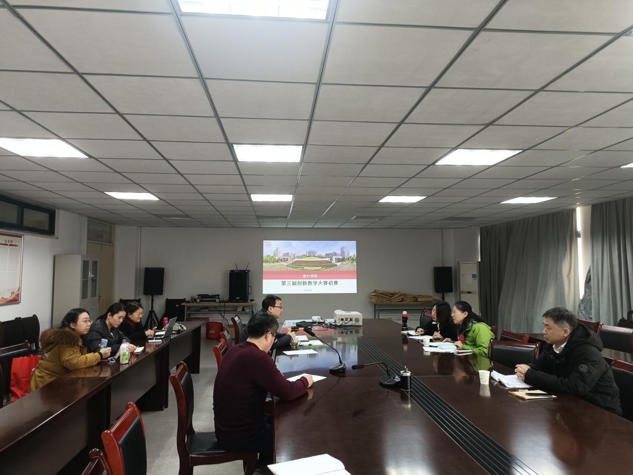 初賽過程在教學(xué)辦組織下有序開展。參賽選手按照創(chuàng)新教學(xué)大賽規(guī)范要求,依次對所帶課程進(jìn)行了說課和課程內(nèi)容介紹,重點闡述了該門課程在教學(xué)方式和教學(xué)內(nèi)容上的創(chuàng)新點。評審老師對每位選手的現(xiàn)場表現(xiàn)進(jìn)行點評,并提出優(yōu)化意見。賽后場內(nèi)教師進(jìn)行了真摯的交流,并對后期的開展工作提出了一些具體問題。 此次初賽促動了參賽選手和評審老師、參賽選手與選手之間有關(guān)教學(xué)創(chuàng)新的深入交流,也是一個相互學(xué)習(xí)相互進(jìn)步的過程。同時以賽促教,讓老師們結(jié)合日常教學(xué)打開思路進(jìn)行課程創(chuàng)新,以達(dá)到更好的教學(xué)質(zhì)量提升效果。