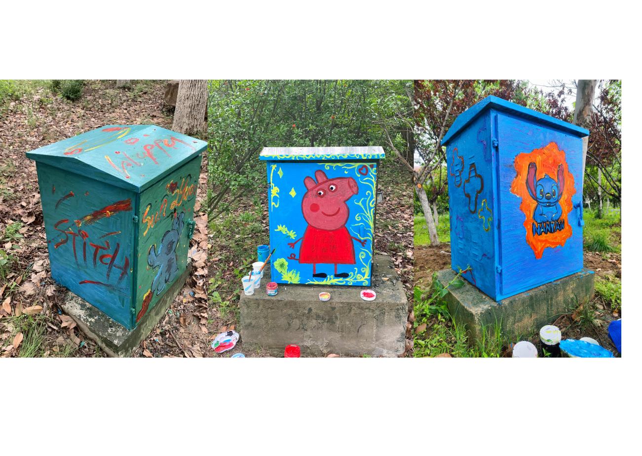 此次活動學生黨員分工明確、互幫互助,通過彩繪的方式,讓配電箱和井蓋等老舊設施煥發新顏,展現了我院專業優勢和學生黨員積極向上的精神風貌,也讓公園里增添了一張張靚麗的名片。
