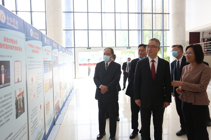 安徽省政府副秘書長、省政府政研室主任葉曉明,中共安徽省委教育工委副書記、省教育廳廳長趙振華,合肥市委常委、副市長路軍,省外事辦公室副主任王年寶,省政府辦公廳副主任金宗順,中共安徽省委教育工委委員、省教育廳副廳長張庚家,安徽大學(xué)黨委書記蔡敬民等陪同參觀。(黨委宣傳部)