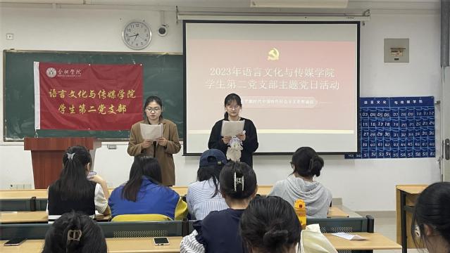 為認真學習貫徹習近平新時代中國特色社會主義思想,5月26日,語言文化與傳媒學院學生第二黨支部在5棟309開展《習近平新時代中國特色社會主義思想專題摘編》誦讀活動,支部全體黨員參加。