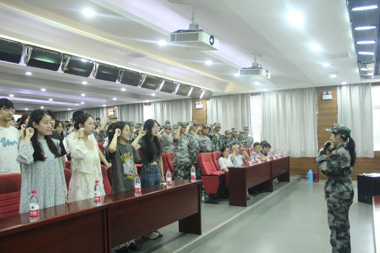 大會共有六項。會議伴隨著莊嚴的國歌開始,全體師生肅立,整齊的歌聲嶄露出文傳學院的朝氣。接著,顧盼盼對23級新生表示熱烈歡迎,并指出大學生活是充滿希望與挑戰(zhàn),期望新生們能盡快適應新的生活。隨后大會第二項,由語言文化與傳媒學院院長丁增武致辭,丁增武表達了學院對新生們的期許與祝福,希望大家不辜負學院的期待,勇于開拓,積極進取,再創(chuàng)學院的新輝煌。大會第三項,由語言文化與傳媒學院教師代表張體云老師發(fā)表講話,張體云以自身經(jīng)歷勉勵同學們成長為身心健康的人,她表示,同學們在大學生活中應不斷拓展視野,把握機會,保持明確的人生方向,珍惜時間,學會自我療愈,做溫暖的人,心若菩提,向陽而生。隨后大會第四項,學院學生代表詹迎雪上臺發(fā)言,她與新生們分享了自己大學幾年的感悟與收獲,并倡議同學們積極向上,頑強拼搏。大會第五項,新生代表祝佳敏做表態(tài)發(fā)言,她分享了自己在軍訓中的種種收獲,并帶領(lǐng)新生們共同宣誓。大會第六項,由研究生代表王禹陽發(fā)言,他表達了自己入學的欣喜,同時也激勵新生們不斷學習。