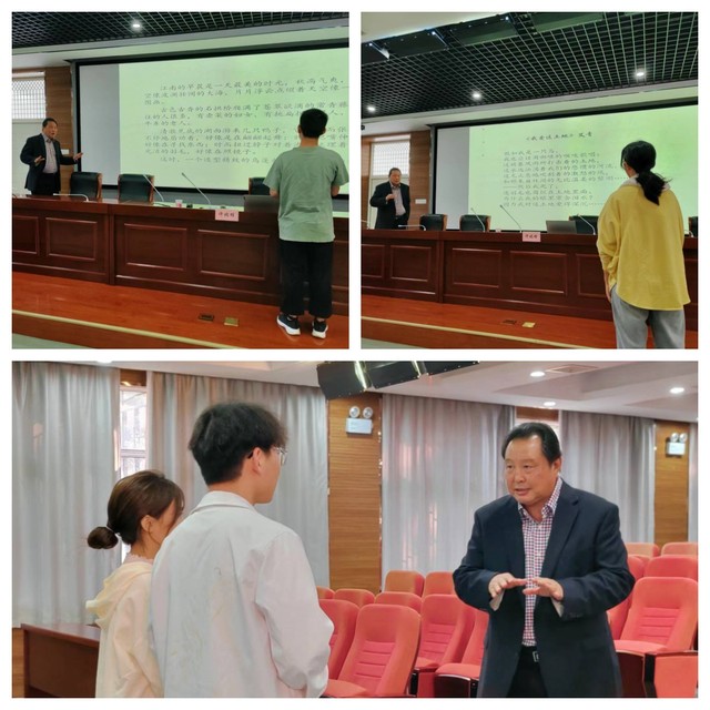 在此次講座中,許教授穿插朗誦了各種體式和情調的作品,時而慷慨激昂,時而婉轉優(yōu)美,時而深沉含蓄,時而輕松歡快,將朗誦藝術表現(xiàn)得淋漓盡致。此外,許教授還現(xiàn)場帶領大家進行朗誦實訓,把講座的氣氛推向高潮。在座的同學們爭先恐后,都不想放棄難得的學習機會,許教授的細心指點,也讓同學們深刻體會到了朗誦的魅力。