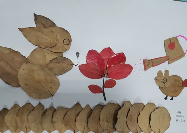 同學們積極踴躍的報名活動,在活動中充分發揮想象力,采集五彩繽紛的秋葉進行美的再創作,通過自己的設計與實踐創造了一幅幅獨具創意的作品,將自己眼中秋日的多彩畫卷呈現于紙上。制作出來的貼畫作品,主題突出、形式新穎、風格鮮明,每一幅都透露著學生們獨特的創意、審美和對大自然的熱愛。