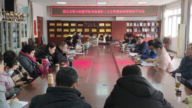 2月27日上午,語言文化與傳媒學(xué)院在一期五棟二樓會議室召開新學(xué)期全體教職工大會暨期初師德師風(fēng)學(xué)習(xí)會,布置新學(xué)期各項(xiàng)工作。