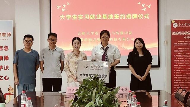 6月25日,合肥大學語言文化與傳媒學院與安徽清曉方塘教育科技有限公司在一區善思樓C座二樓會議室舉行了大學生實習就業基地簽約授牌儀式。